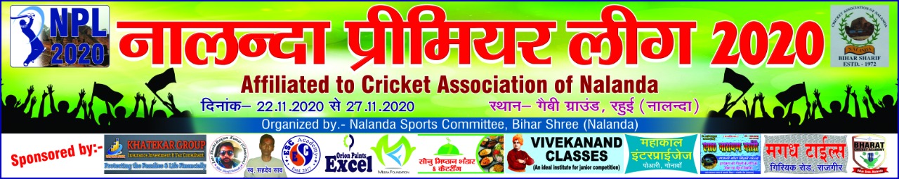 नालंदा स्पोर्ट्स कमिटी द्वारा आयोजित इस टूर्नामेंट को सफल बनाने के लिए  Orion paints excel के रॉकी कुमार, Khatekar group से बुलबुल खटेकर एवं मुनचुन जी, S. Narayan nursery से अभिजीत सोनू, Vivekanand Classes से संजीव कुमार, Esc Academy से अविनाश कुमार, Mahakal Enterprises से पियूष कुमार, Magadh tiles Rajgir से रिशु कुमार, और  Meera Foundation से ओमकार सोनू जी ने अपना सहयोग दिया।