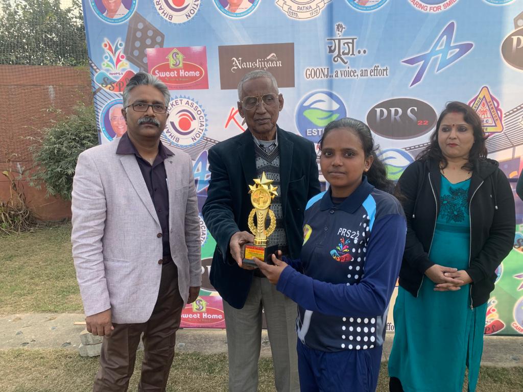 पूर्णिया विजार्ड की पिंकी कुमारी को प्लेयर ऑफ द मैच और बेस्ट बॉलर का पुरस्कार दिया गया। अंशू अपूर्वा बेस्ट बैट्समैन बनी। बुधवार तक खेले गए मैचों के अनुसार ओरेंज कैप पूर्णिया विजार्ड की अपूर्वा कुमारी के पास है जबकि पर्पल कैप भागपुर बांबर्स के निवेदिता भारती के पास है। खिलाड़ियों को पटना जिला क्रिकेट संघ के सचिव अजय नारायण शर्मा, पूर्व महिला क्रिकेटर अंब्रा नारायण, लीग के संरक्षक राजीव कुमार सिंह और रमण एंड कंस्ट्रक्शन के सीईओ अजीत कुमार ने पुरस्कृत किया। सीईओ अजीत कुमार ने इसके अलावा पूर्णिया टीम को बेहतर खेल के 3600 रुपए का नकद पुरस्कार भी प्रदान किये।