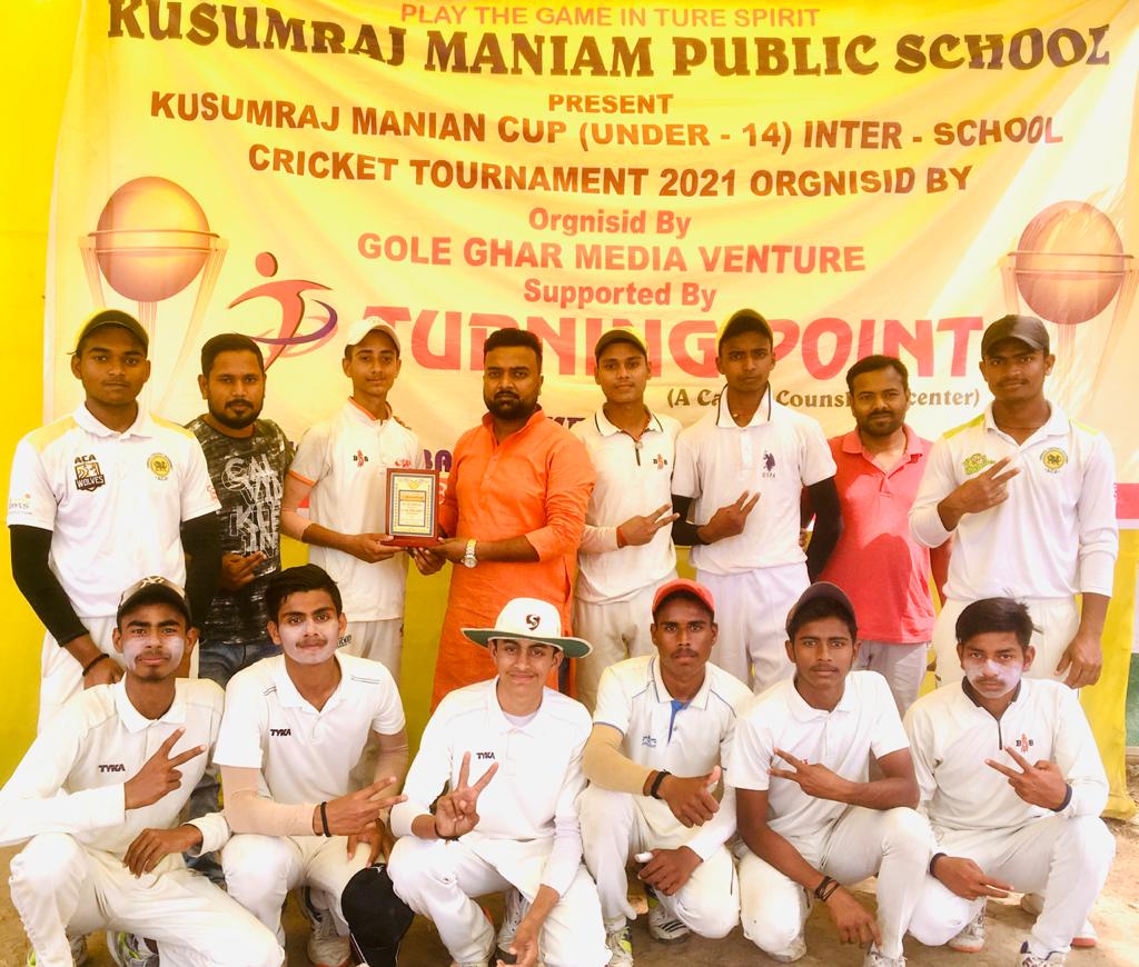 जवाब में बैटिंग करने उतरे विद्या मंदिर के सभी बल्लेबाज 14.4 ओवर में 93 रन पर आउट हो पवेलियन लौट गए। शिवम ने 17 रन में 3 चौका लगाया।अतिरिक्त के रूप में 23 रन मिले।गेंदबाज अरूण ने 23 रन देकर 4 विकेट लिया। यह मैच अंशुल क्रिकेट एकेडमी ने 132 रन से जीता।विजेता टीम के अश्विनी को मैन ऑफ द मैच का पुरस्कार टर्निंग प्वाइंट के एमडी विजय शर्मा ने प्रदान किया।