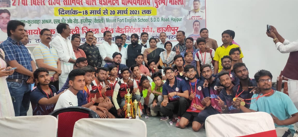 वैशाली:- बिहार राज्य बॉल बैडमिंटन संघ के तत्वावधान में एवं वैशाली जिला बॉल बैडमिंटन संघ के द्वारा कुशवाहा आश्रम हाजीपुर में खेली जा रही 27वीं बिहार राज्य सीनियर बॉल बैडमिंटन चैंपियनशिप के पुरुष वर्ग के फाइनल मैच में नवगछिया ने सिवान को 35-31,35-19 से पराजित कर विजेता होने का गौरव प्राप्त किया। जबकि महिला वर्ग के फाइनल मुकाबले में गत वर्ष की विजेता वैशाली ने सारण को संघर्षपूर्ण मुकाबले में 35-30,17-35,35-21 से पराजित कर लगातार पाँचवीं बार खिताब पर कब्जा जमाया। पुरूष वर्ग में नवगछिया की ओर से अंतरराष्ट्रीय खिलाड़ी राहुल कुमार, अमन कुमार, मुकुल, गुलशन, मो.सैफ अली व आशीष ओझा, सुमित, राहुल ने अच्छे खेल का प्रदर्शन किया।