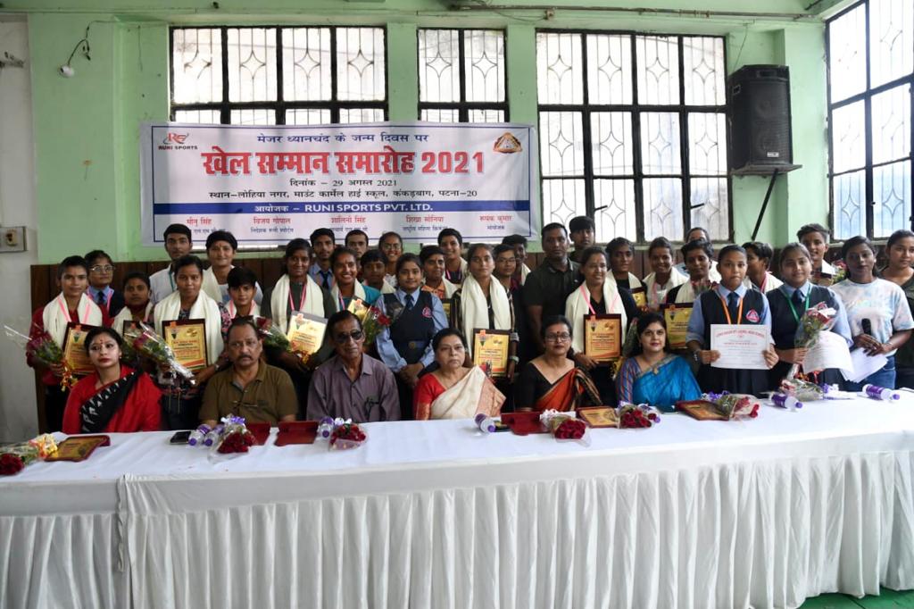 पटना। राजधानी पटना के लोहियानगर माउंट कार्मेल हाईस्कूल, कंकड़बाग में रुनी स्पोट्र्स (Runi Sports) एवं एलएमसी ग्रुप द्वारा खेल दिवस के अवसर पर आज बिहार की महिला क्रिकेटर एवं स्कूल के टॉपरों छात्र-छात्राओं को सम्मानित किया गया। यह जानकारी समारोह के संयोजक रुपक कुमार एवं शिखा सोनिया ने दी।