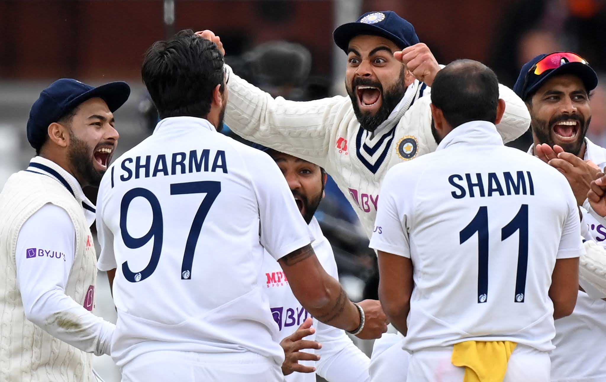 पांचवे दिन का खेल पूरे तरह से भारत के नाम रहा। भारतीय टीम के गेंदबाजों ने इंग्लैंड के लॉर्ड्स में शानदार बल्लेबाजी करते हुए 9वें विकेट के लिए 89 रन जोड़े। पांचवे दिन के पहले सेशन ने भारतीय टीम ने 2 विकेट खोकर 105 रन बनाए। जिसमे शमी और बुमराह में शानदार बल्लेबाजी करते हुए इंग्लैंड के सभी गेंदबाजों को खासा परेशान किया। शमी ने लॉर्ड्स में अर्धशतक भी जाड़ा। शमी ने 70 गेंदों पर नाबाद 56 रन बनाए। शमी का साथ बुमराह में बखूबी निभाया। टेस्ट में बुमराह ने अपना सर्वाधिक स्कोर बनाया। बुमराह ने नाबाद 34 रन बनाए। लंच के बाद भरतीय टीम ने 8 विकेट के नुकसान पर 298रन के स्कोर पर पारी घोषित कर दी।