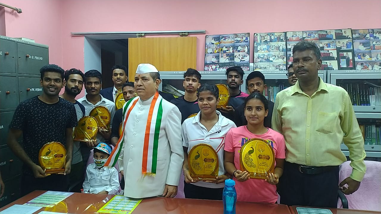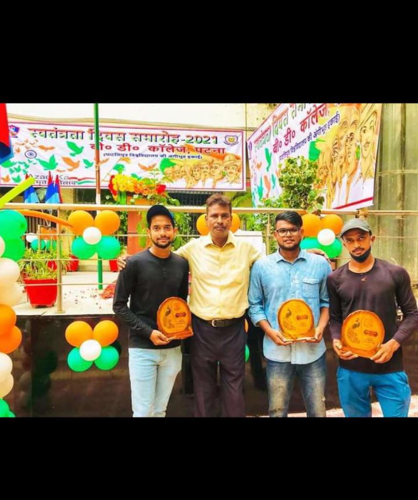 पटना:- स्वतंत्रता दिवस के अवसर पर बी डी कॉलेज पटना के प्राचार्य डॉ.प्रवीण कुमार ने झंडोत्तोलन के बाद सत्र 2019-20 के अनेक खिलाड़ियों को पुरस्कृत किया गया। आप को बता दें कि कोरोना काल के कारण सत्र 2019-20 का पुरस्कार 2021 में दिया जा रहा है।