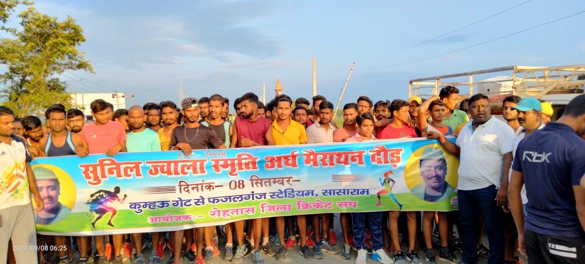 बड़े हर्ष के साथ सूचित करना पड़ रहा है कि रोहतास जिला क्रिकेट संघ के तत्वावधान में 8 सितंबर 2021 को खेल प्रेमी बिहार क्रिकेट एसोसिएशन के भूतपूर्व प्रवक्ता एवं भूतपूर्व एथलेटिक संघ एवं क्रिकेट के सचिव तथा भव्य खेलो के आयोजन करता स्वर्गीय सुनील ज्वाला जी के जन्मदिन के शुभ अवसर पर भव्य सुनील ज्वाला स्मृति मैराथन दौड़ का आरम्भ संघ के अध्यक्ष चंद्रशेखर पासवान ने हरि झंडी दिखाकर किया।